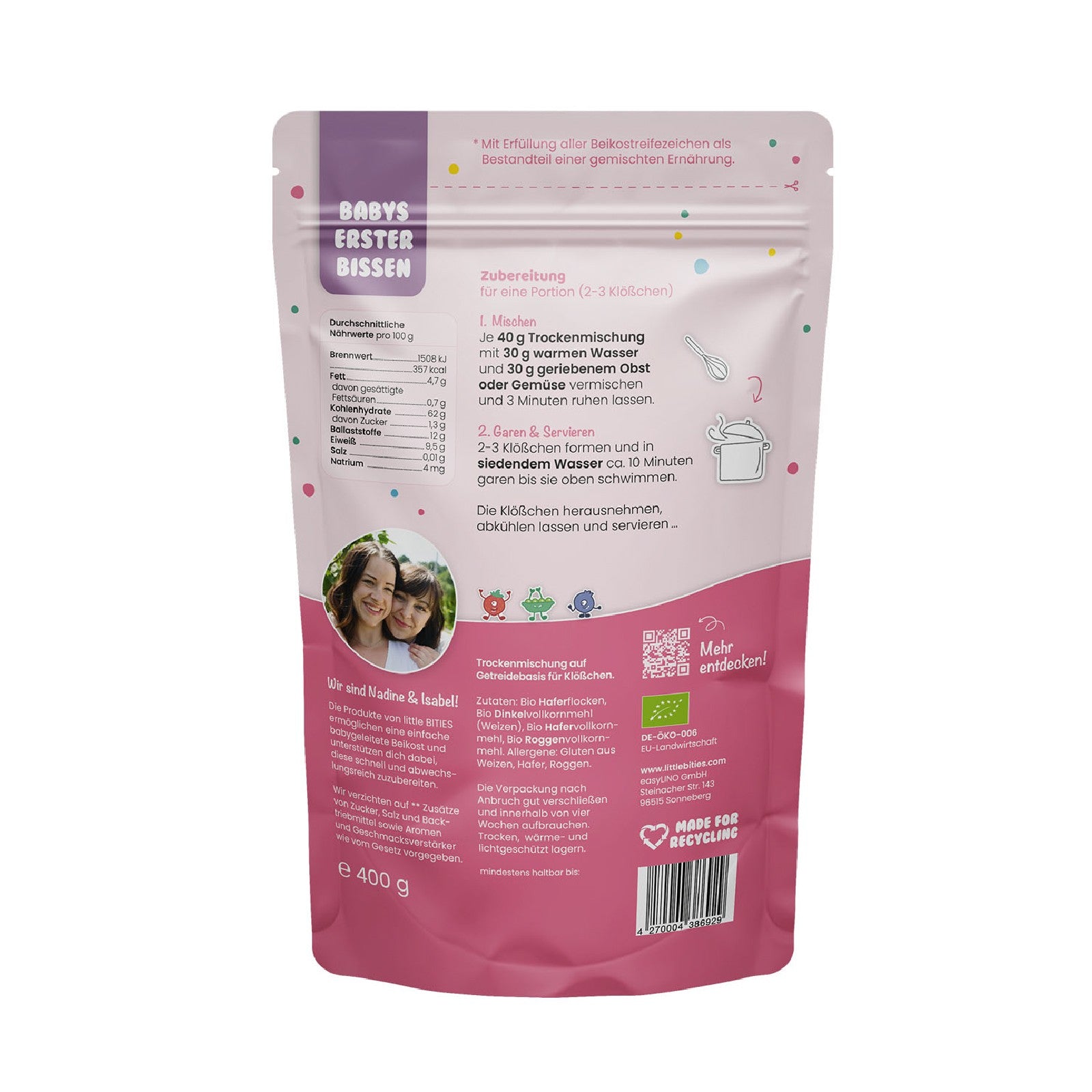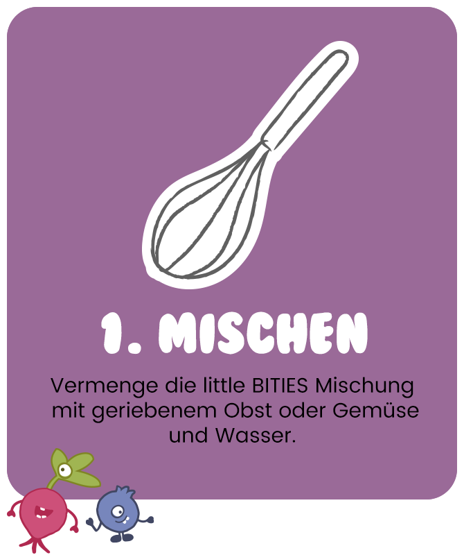 Unsere Bio Trockenmischungen sind easy peasy zubereitet, in wenigen Minuten. So hast du zu jeder Gelegenheit eine sättigende Mahlzeit, ob zu Hause, bei den Großeltern, im Urlaub oder eurem Ausflug. Die Zubereitung von little BITIES ist vielfältig und liegt in deiner Hand, egal ob süß mit Obst oder herzhaft mit Gemüse. So kannst du das Geschmacksbild deines Babys easy erweitern und nebenbei Allergien vorbeugen.